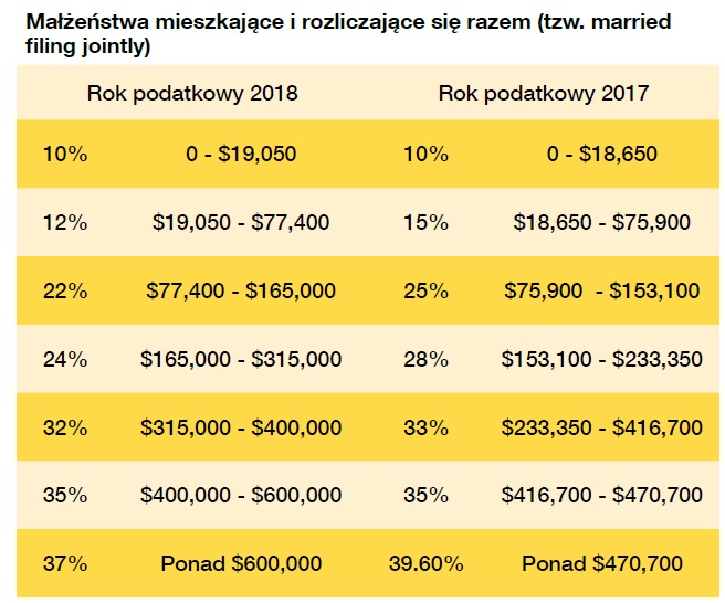 Małżeństwo z dwójką dzieci w ubiegłym roku mogło sobie odpisać $28,900 ($12,700 odpis standardowy + $4050x4 odpis osobisty). W tym roku niestety ta suma wynosi tylko $24,000.