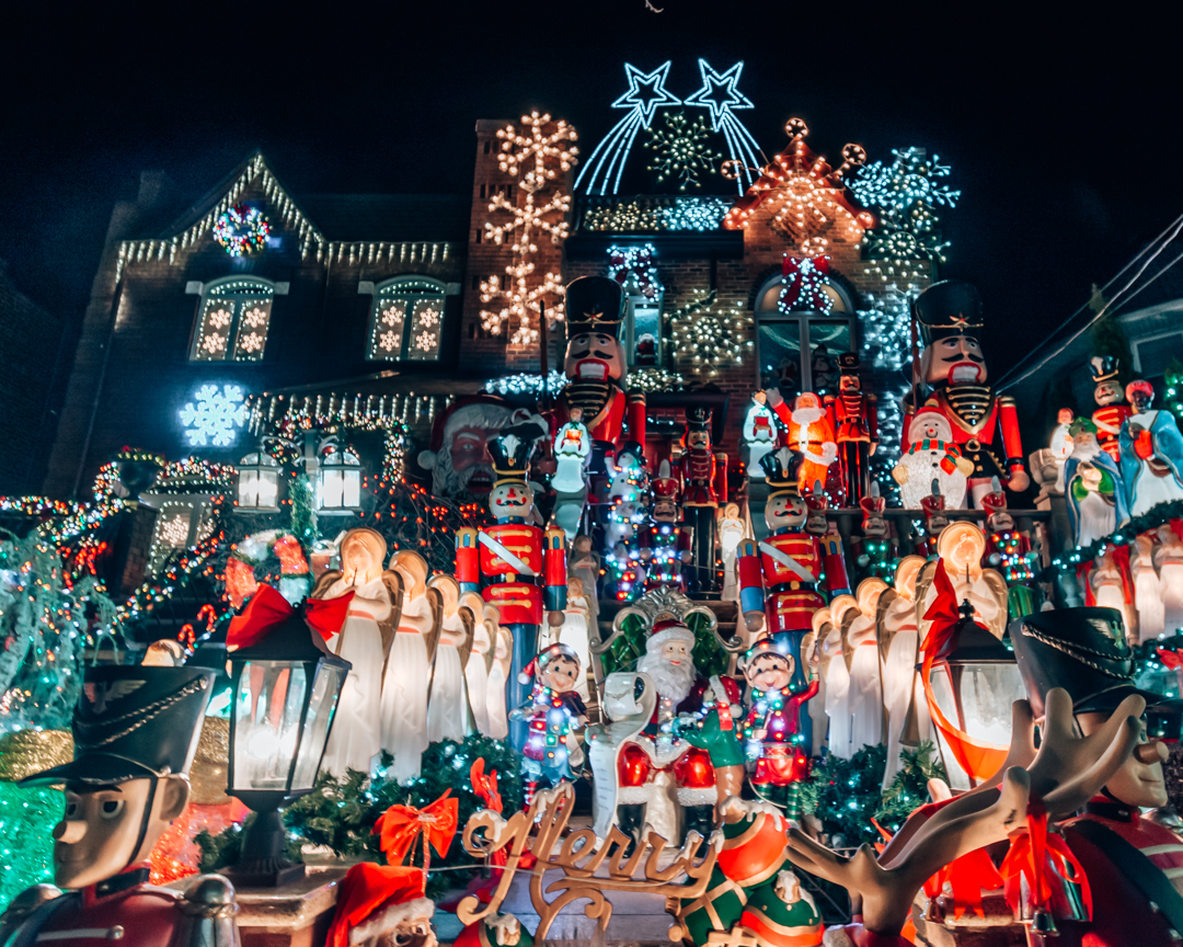 Co weekend mieszkańcy i goście mogą podziwiać fantazję właścicieli tutejszych domów, którzy przyozdabiają je niesamowitymi dekoracjami! Największy dmuchany bałwan? Olbrzymie choinki? Tupiące i śpiewające latające renifery? Kolędy dobiegające z głośników? Tylko tutaj! I choć nie są to w pełni profesjonalne pokazy, to do Dyker Heights przybywaj takie tłumy, że ostatnio niektóre firmy zaczęły nawet organizować wycieczki do najlepiej udekorowanych domów. W sekrecie zdradzimy Wam, że znajdziecie je między 11th a 13th Avenue w okolicy 83 - 86th Street i najlepiej oglądać je w połowie grudnia.