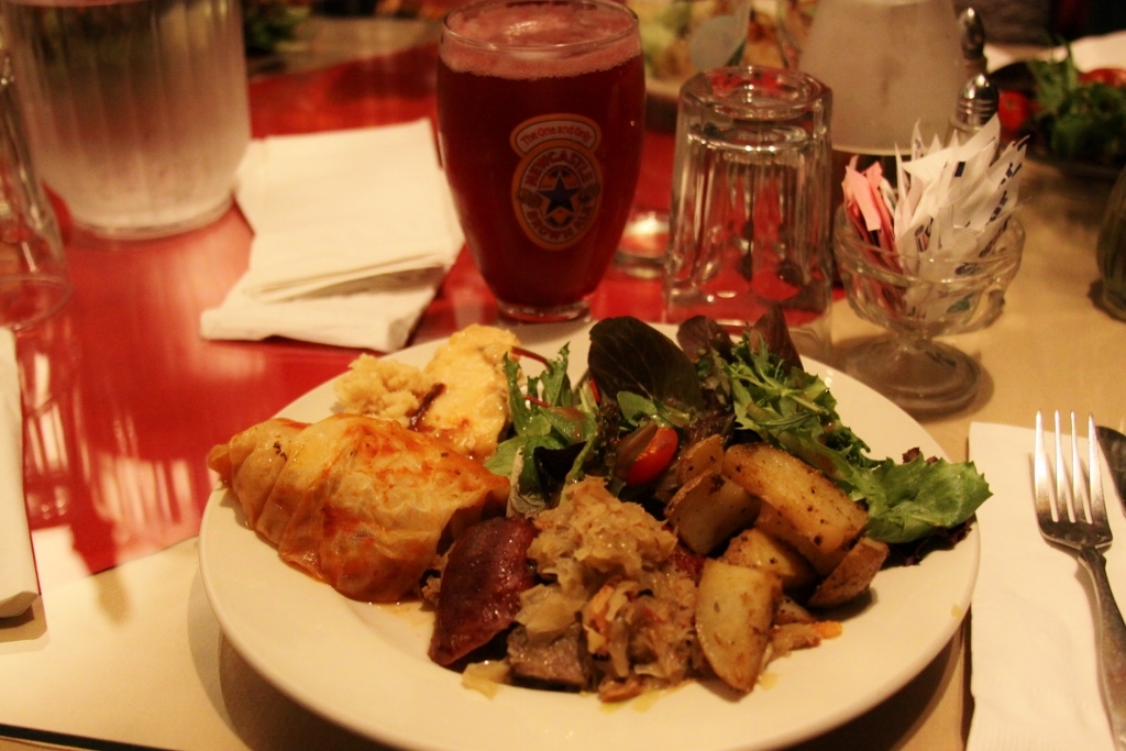Mimo że, wokół mnóstwo jest restauracji i barów najbardziej smakowało nam polskie jedzenie w Matterhorn Inn. Na kolacji w formie bufetu można było przebierać w tradycyjnych daniach kuchni polskiej. Gołąbki w sosie, bigos z kiełbasą i fenomanalna zupa z okolicznie zebranych grzybów leśnych przygotowana przez Bogusię. A na deser kilka rodzajów ciast w tym (szczególnie polecam!) chrupiąca „szarlotka brzoskwiniowa” na ciepło. Wszystko było smaczne jak u mamy.