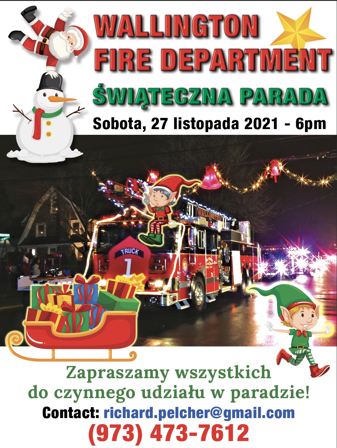 WALINGTON FIRE DEPARMENT zaprasza na ŚWIĄTECZNĄ PARADĘ w sobotę 27 listopada 2021 - 6 pm
