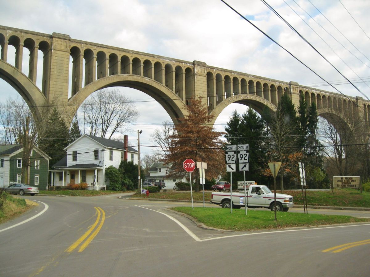 Relaksująca jazda przez zalesione tereny Susquehanna County. Zatrzymaj się koniecznie, by zobaczyć wiadukt Starrucca, nadal używany, najstarszy kamienny most kolejowy. Wszystko w tym wiadukcie jest ekstremalne: 1200 stóp długości i 110 stóp wysokości, koszt budowy $320.000 (był to najdroższy most kolejowy na świecie). Warto też odwiedzić rezerwat Florence Shelly, by pospacerować pośród ponad 300 akrów roślin, zwierząt i ptaków.