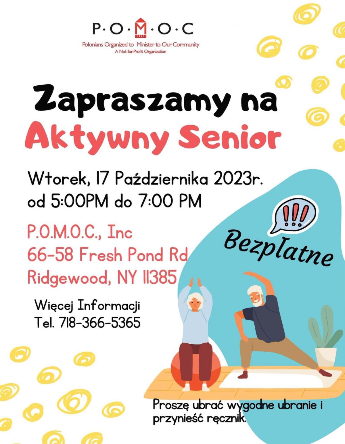 P.O.M.O.C., Inc zaprasza seniorów na bezpłatne zajęcia 17 października 2023