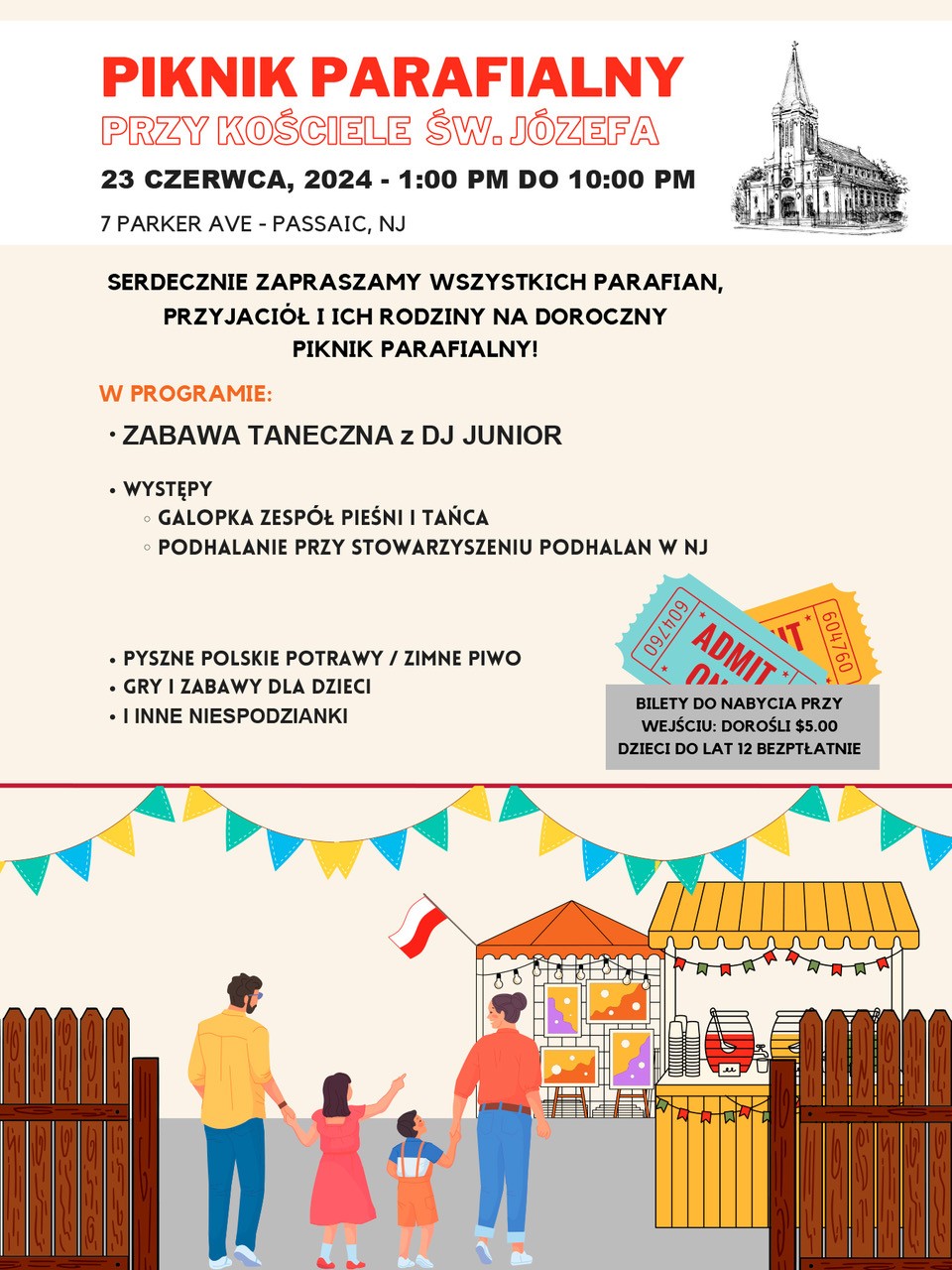 Zaproszenie na piknik parafialny przy Kościele św. Józefa w Passaic, NJ